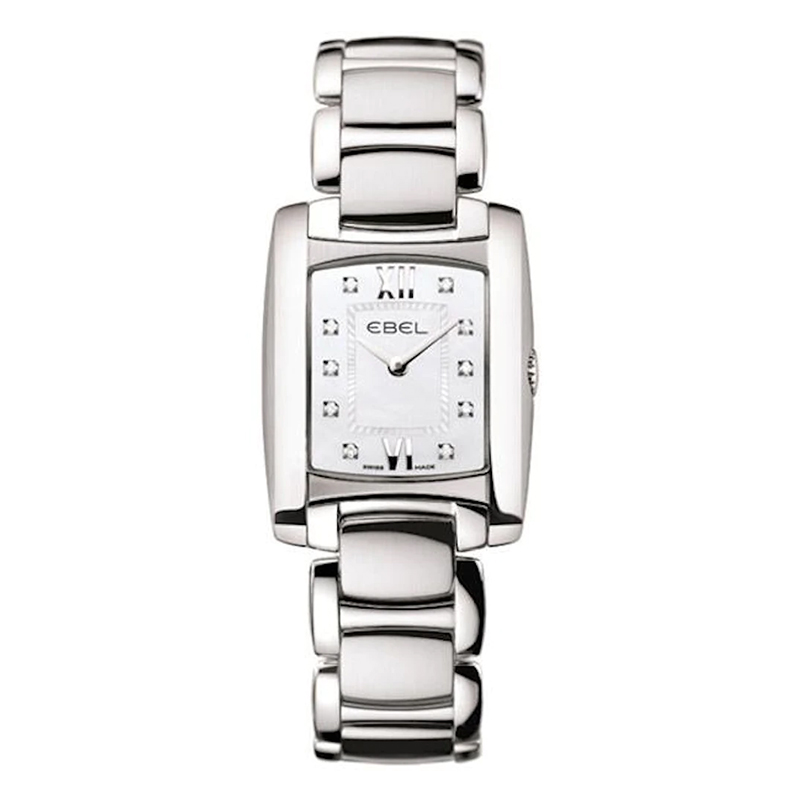 EBEL BRASILIA MINI mouvement à quartz, boitier 24 x 30 mm en acier, cadran nacre serti diamants, sur bracelet acier