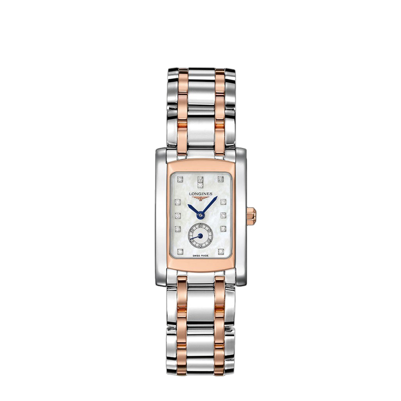 LONGINES DOLCE VITA mouvement à quartz, boitier 19,8 x 24,5 mm en acier et or rose sur bracelet acier et or rose