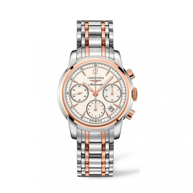 LONGINES SAINT-IMIER Chronographe, mouvement automatique, boitier 39 mm en acier et or rose sur bracelet acier et or rose