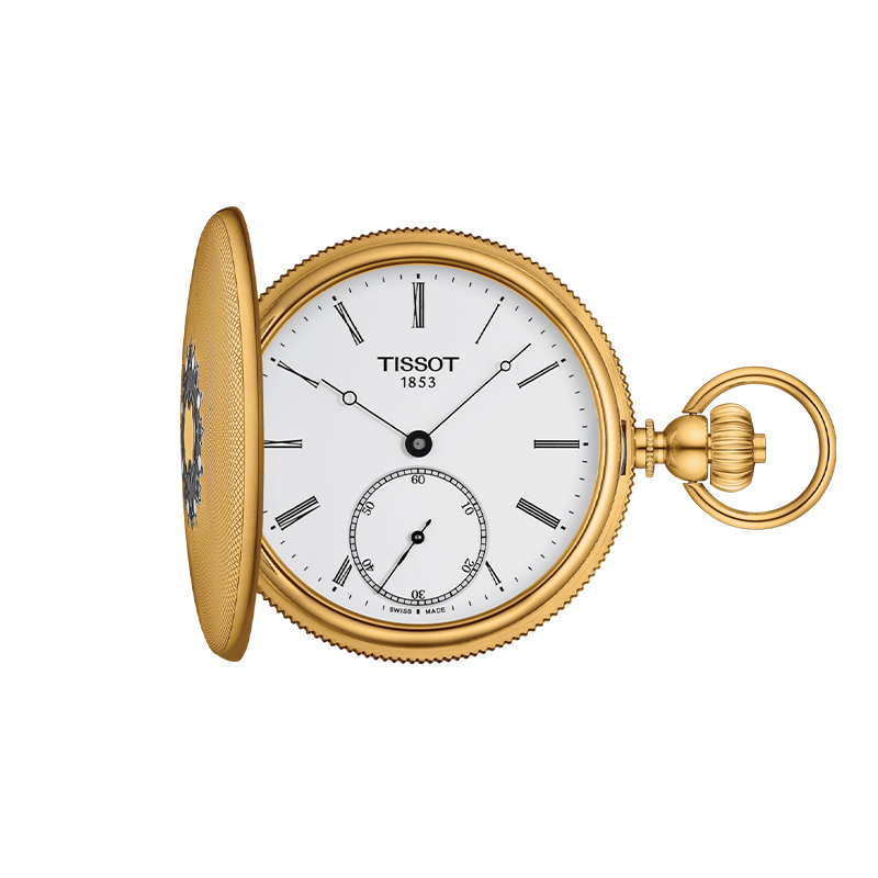 TISSOT MONTRE DE POCHE, SAVONETTE mouvement mécanique à remontage manuel en acier avec revêtement PVD or jaune