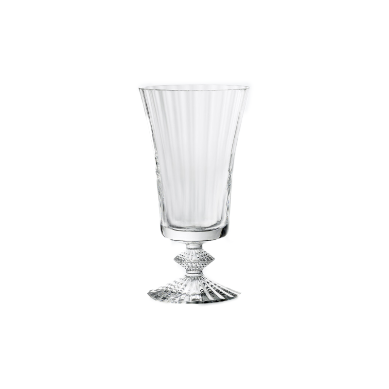 Le verre cristal clair Mille Nuits est rythmé de subtiles côtes vénitiennes sur toute sa paraison et évoque par son élégance le charme et l’opulence des palais orientaux. Rayonnant depuis la jambe, le motif de côte vénitienne se poursuit sur le pied du verre. Élément décoratif emblématique de la collection de verres Mille Nuits, l’élégant bouton losangé au centre de la jambe fait le lien entre la base de la paraison et le pied.La collection Mille Nuits se décline aussi en Arts de la table (carafes et assiettes) et Décoration (chandeliers, lampes et candélabres).
